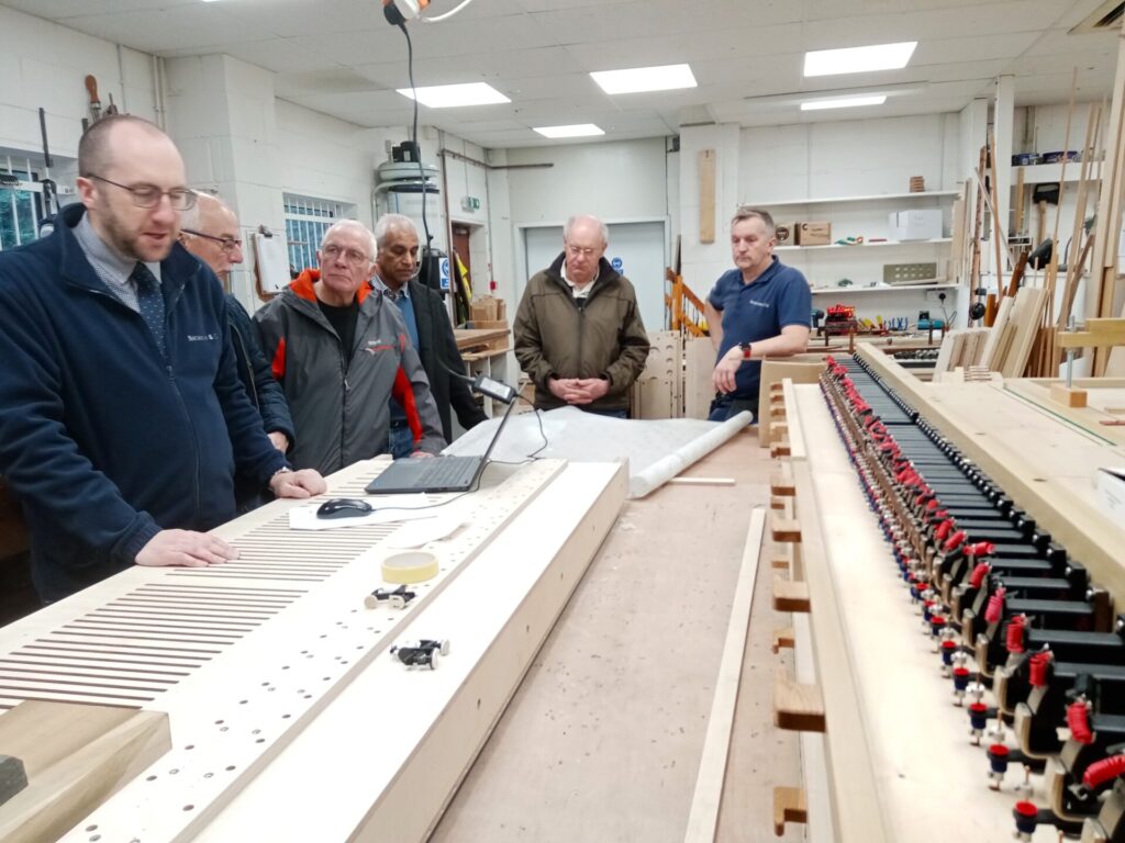 On Thursday November 27th, 15 members of the Transport & Machinery Group paid a visit to Nicholson's Organ Works in Malvern/Leigh Sinton. Nicholson's has a long association with Worcester. John Nicholson (1815–1895) was the son of an organ builder in Rochdale and came to Worcester to build a new organ for what is now Huntingdon Hall. When this was finished he stayed on in Worcester and set up his own organ building firm in 1841. It is still one of the major organ builders/restorers in the UK, evidenced by some of their current projects - Gloucester Cathedral, Manchester Town Hall and Leeds Town Hall.