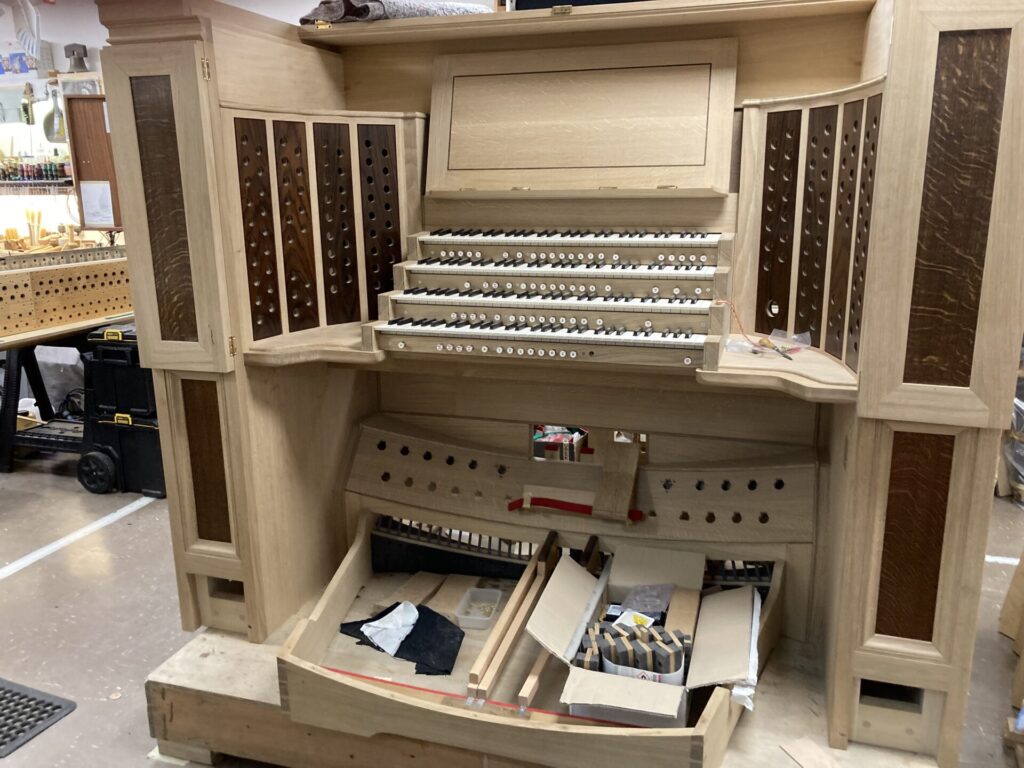 The organ will be returned in almost every way to its 1893 condition including the re-establishment of the original pitch, the manufacture of new actions, new console, chests, and aspects of the wind system, all in a strict replica of the Cavaillé-Coll style. The casework will be returned to its original 1877 appearance with the recreation of the wooden staircases built into either side of the facade.